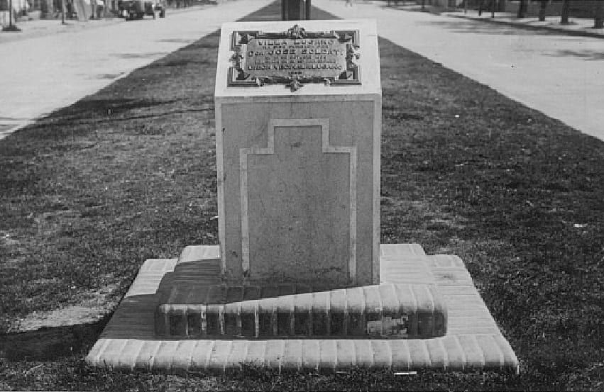 Placa de bronce de 0,40 por 0,30 m. Adosada al mástil.