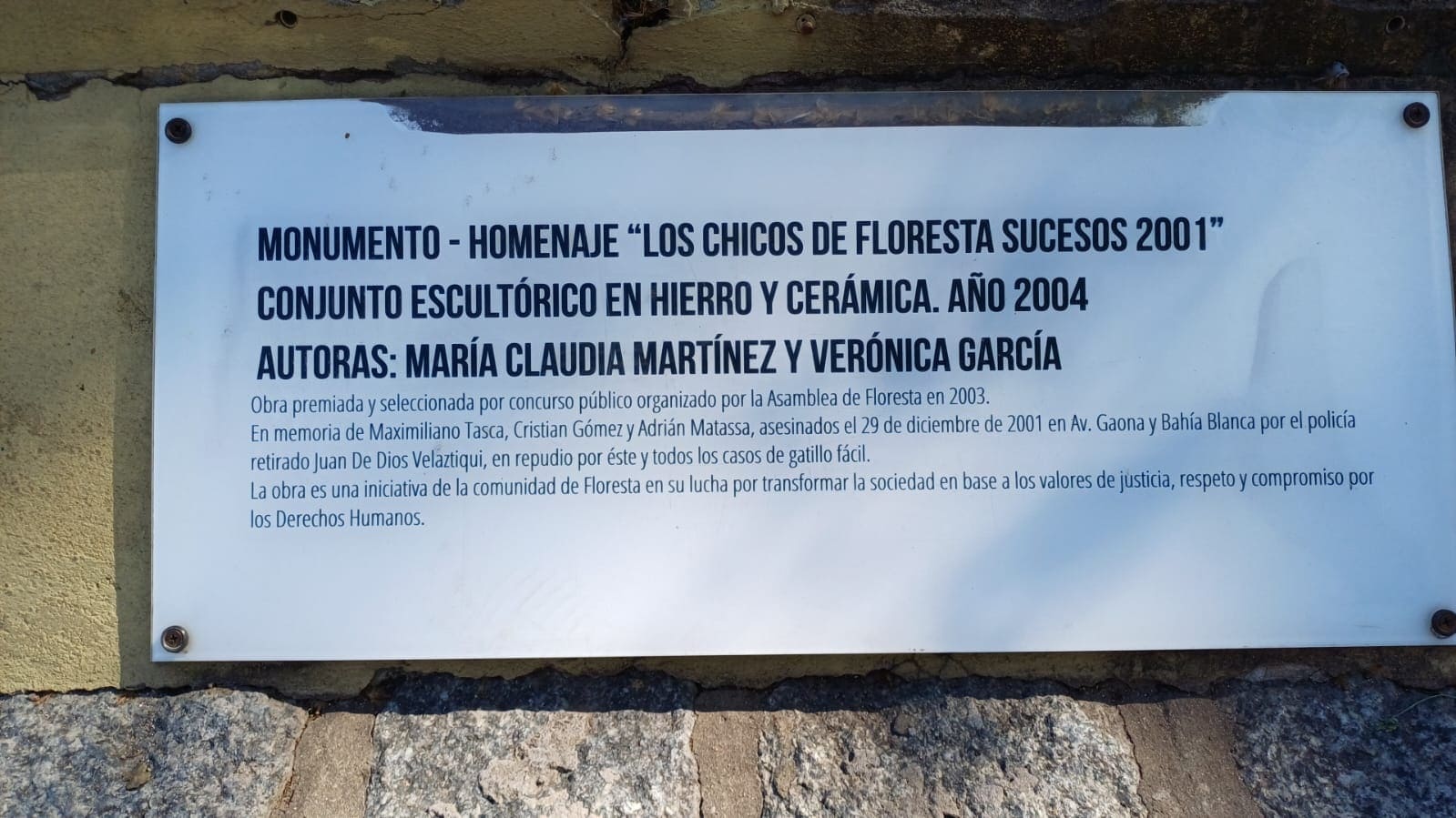A fines de diciembre de 2004 mueren tres jóvenes en el barrio porteño de Floresta en un caso de “gatillo fácil”, conocido como la Masacre de Floresta. Se convocaron veinticuatro marchas para pedir justicia. Tras lograr la condena al victimario por cadena perpetua, el barrio se abocó a la construcción de un monumento-homenaje.