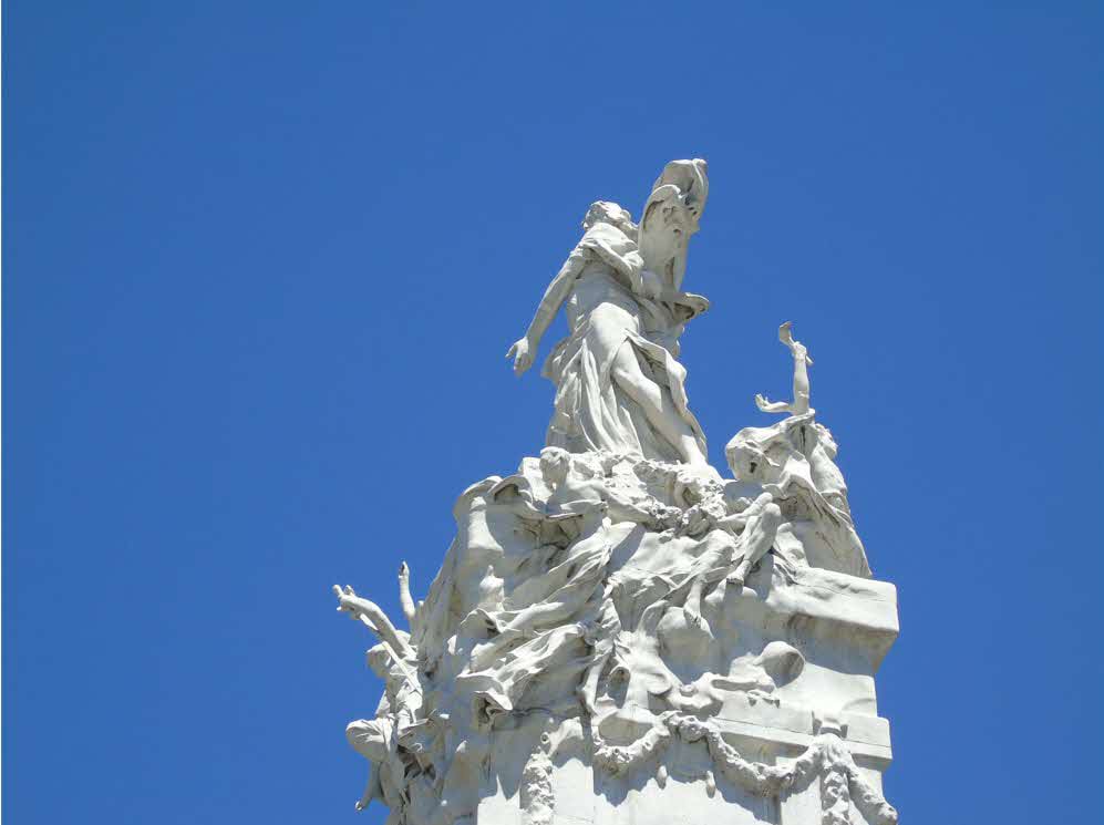 Este monumento en el año 1914 ya estaba emplazado con excepción de los cuatro grupos escultóricos de la base que fueron emplazados en el año 1927.