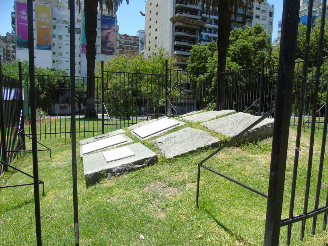 Monolito de mampostería y placa de mármol negro brasilero de 0,60 por 0,40 m.