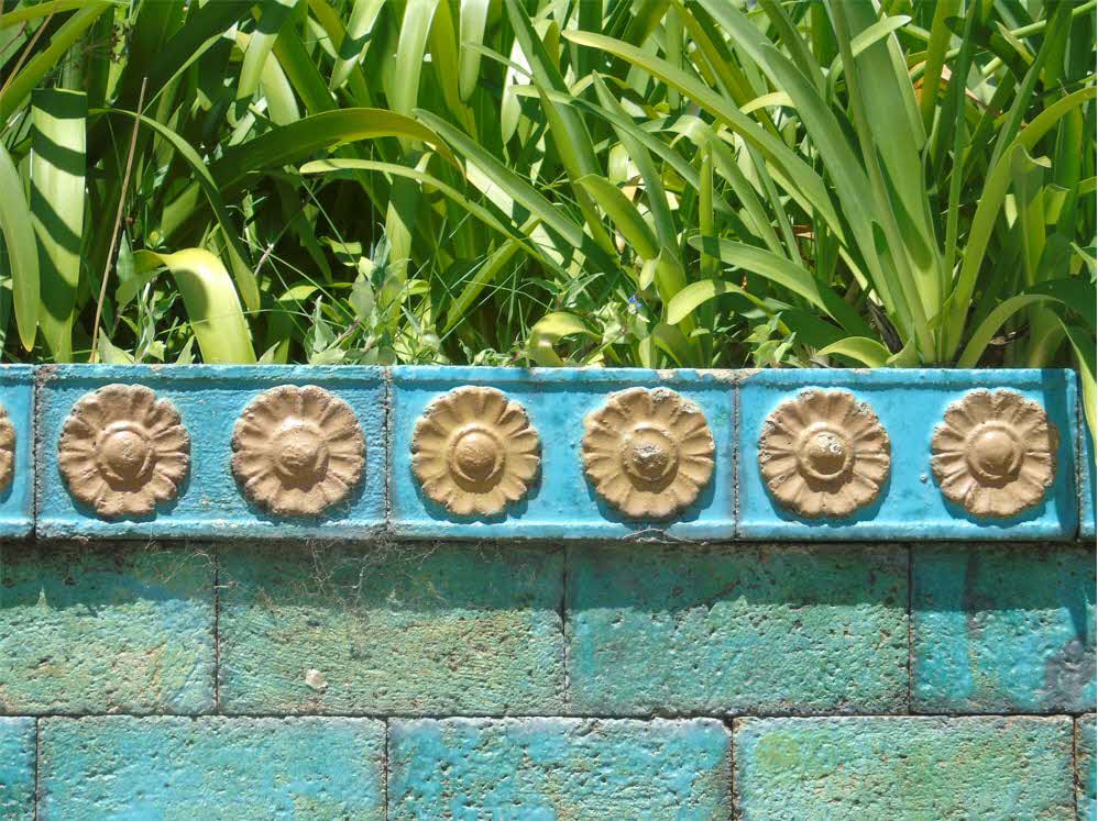 Obra de cerámica representando en relieve la figura del león persa. De tierra refractoria y mayólicas.