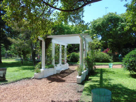 Dentro del parque sobre el lado de la Av. Eva Perón se encuentra un hermoso rosedal rodeado de flores y árboles diversos. Este parque fue diseñado por Carlos Thays a fines del siglo XIX