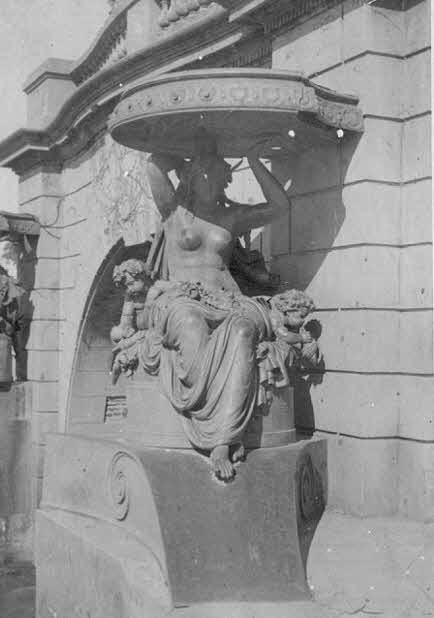 Obra de hierro fundido, representando un desnudo femenino que simboliza a la ninfa de los ríos y los afluentes, rodeada de niños.