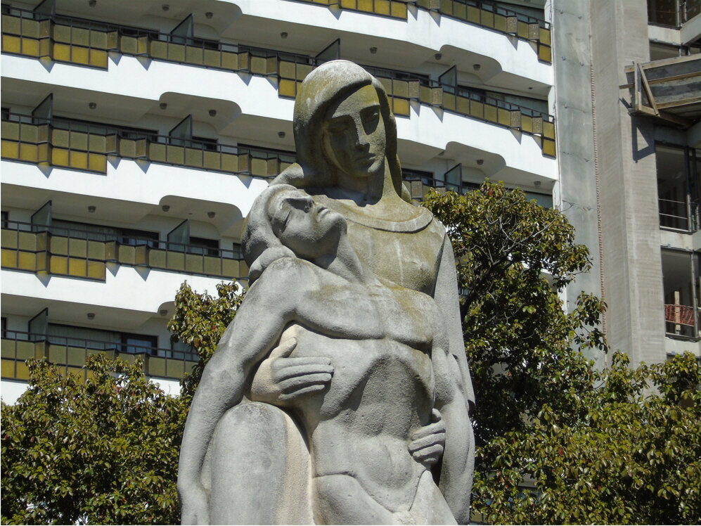 Obra escultórica de piedra, que representa a un hombre joven en brazos de una figura femenina que simboliza la “Patria”, expresando el holocausto de la vida en aras de un ideal. La obra se encuentra emplazada sobre una base con revestimiento de mármol