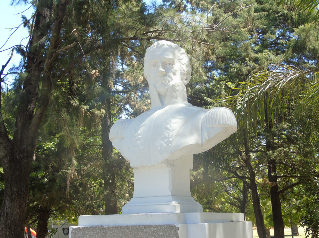 Sobre una base artística de mampostería, se encuentra el busto del prócer ejecutado en mármol de Carrara. En el frente de la base se encuentra grabada la siguiente leyenda: “CORNELIO DE SAAVEDRA” “1760-1829”