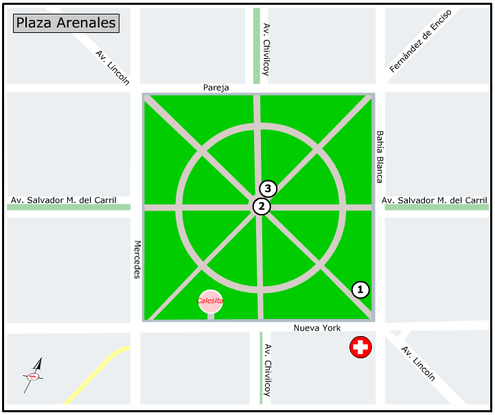 Límites: Mercedes, Bahía Blanca, Nueva York y Pareja (Ubicación en el plano n.o 1).