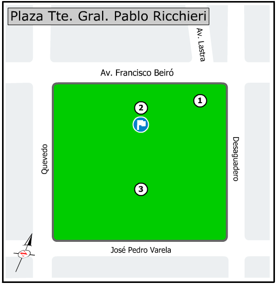 1 - La Madre (grupo escultórico) 2 - Homenaje a la Bandera (mástil) 3 - Tte. Gral. Pablo Ricchieri (busto) |